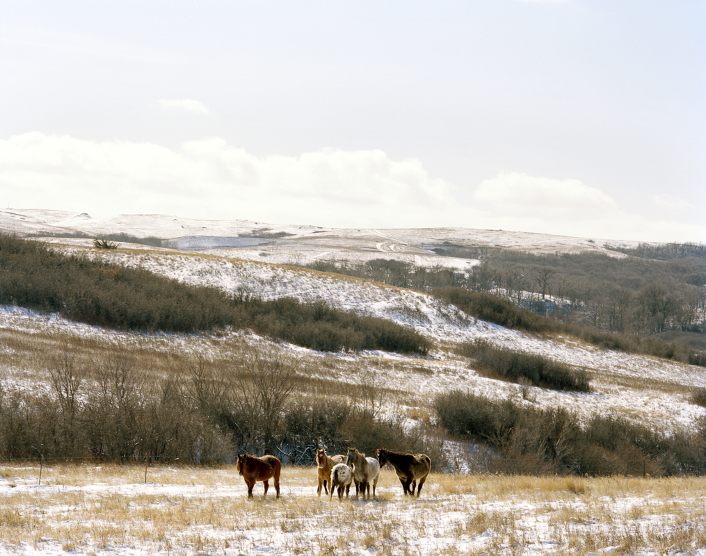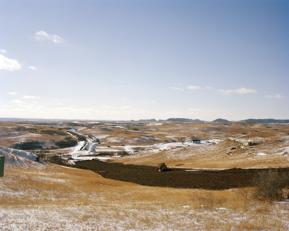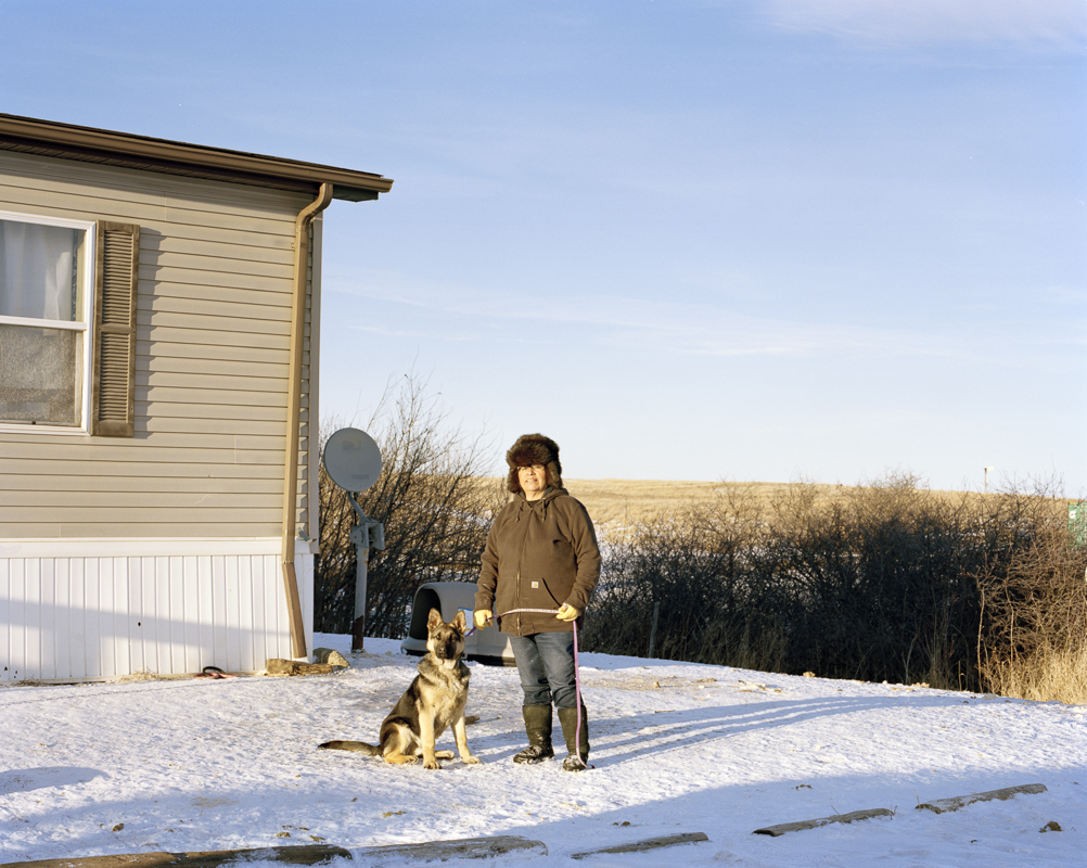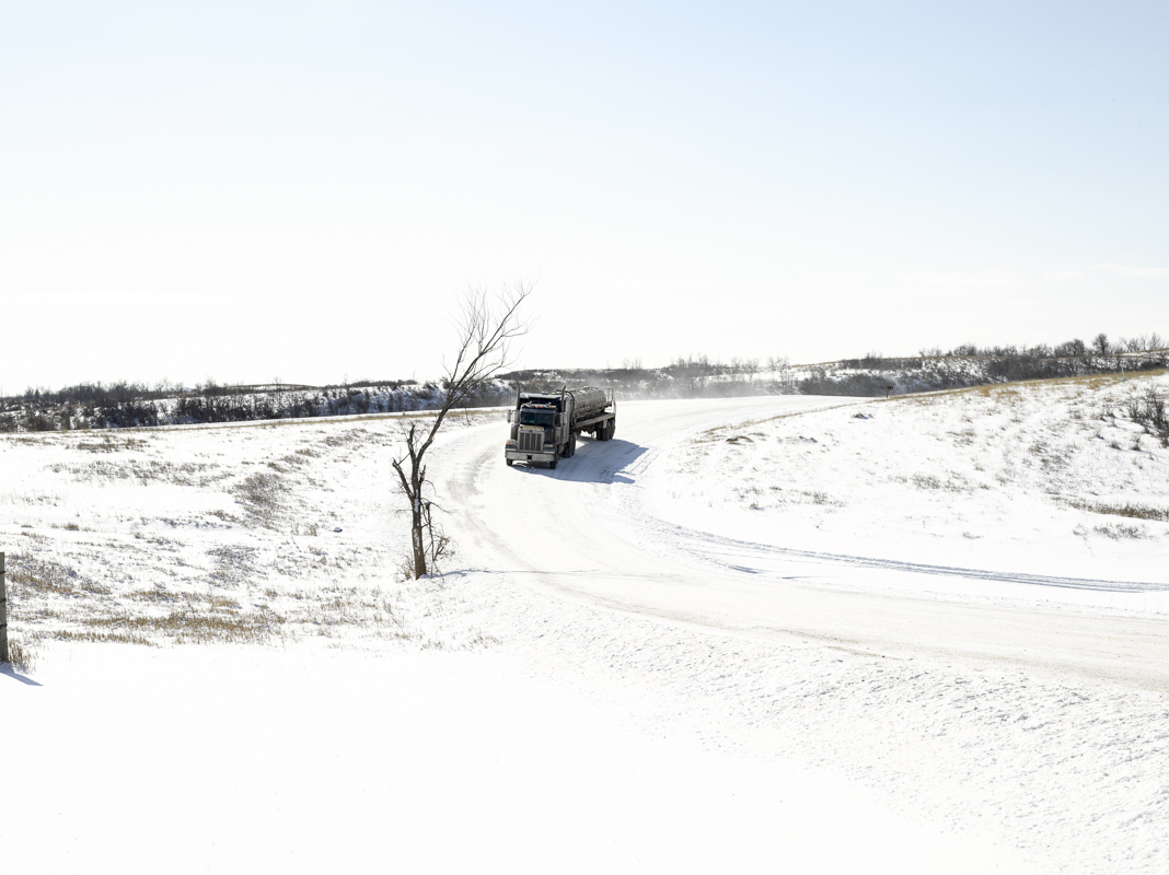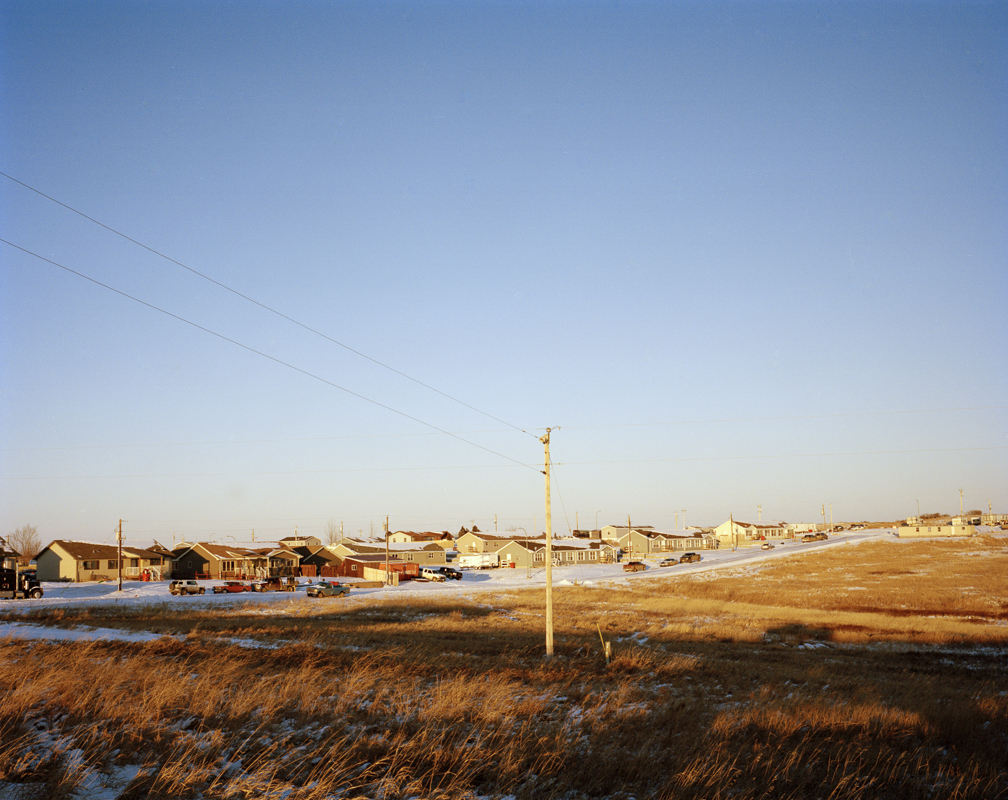 In the 1940’s the U.S. government forcibly relocated the affiliated Mandan, Hidatsa, and Arikara tribes to construct the Garrison Dam. It was an area the tribes occupied for centuries. In a matter of years the land was flooded and the tribes’ ancestral home vanished under water. In February and August 2015 I traveled to the Ft. Berthold Reservation, where the M.H.A. Nation now resides, to photograph the fracking industry’s impact on the community. My ambition was to create images that represent the rippling effects of history and industry on this one community in North Dakota. Conversations with residents made clear that while fracking is destructive and disruptive, decades of disenfranchisement by the government had already traumatized them. As one community member remarked, “the tribe’s been through so many involuntary transitions, we’ve barely been able to get stabilized before another jolt hits.” Undeniably fracking has benefited N.D’s economy. And perversely but justly the tribes receive money for enduring this acute disturbance. Most residents recognize fracking as an unstoppable force and try to move forward by advocating for tighter regulations. But in November 2014, the New York Times reported that from 2006–2014 more than 18 million gallons of oil and toxic waste water were spilled in N.D. Roads once hardly traveled are now trafficked constantly by trucks and are littered with detritus truckers toss out their windows. Ranchers and farmers have witnessed a negative impact on the health of their crops and animals due to spills, traffic, and construction. Because of the historical tendency to make invisible the sufferings of indigenous communities I was compelled to create pictures in this challenging landscape.