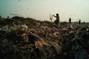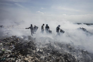 In a 200-acre toxic wasteland 5 kilometers north of Haiti’s capital, Port-au- Prince, hundreds of men, women and children scavenge day and night through the burning wasteland. They earn $12 to $15 a day-on a good day-for recycling plastics as well as clothing, household items and aluminum (for smelting). Some 5,000 tons of waste is created each day in the Port-au-Prince area.