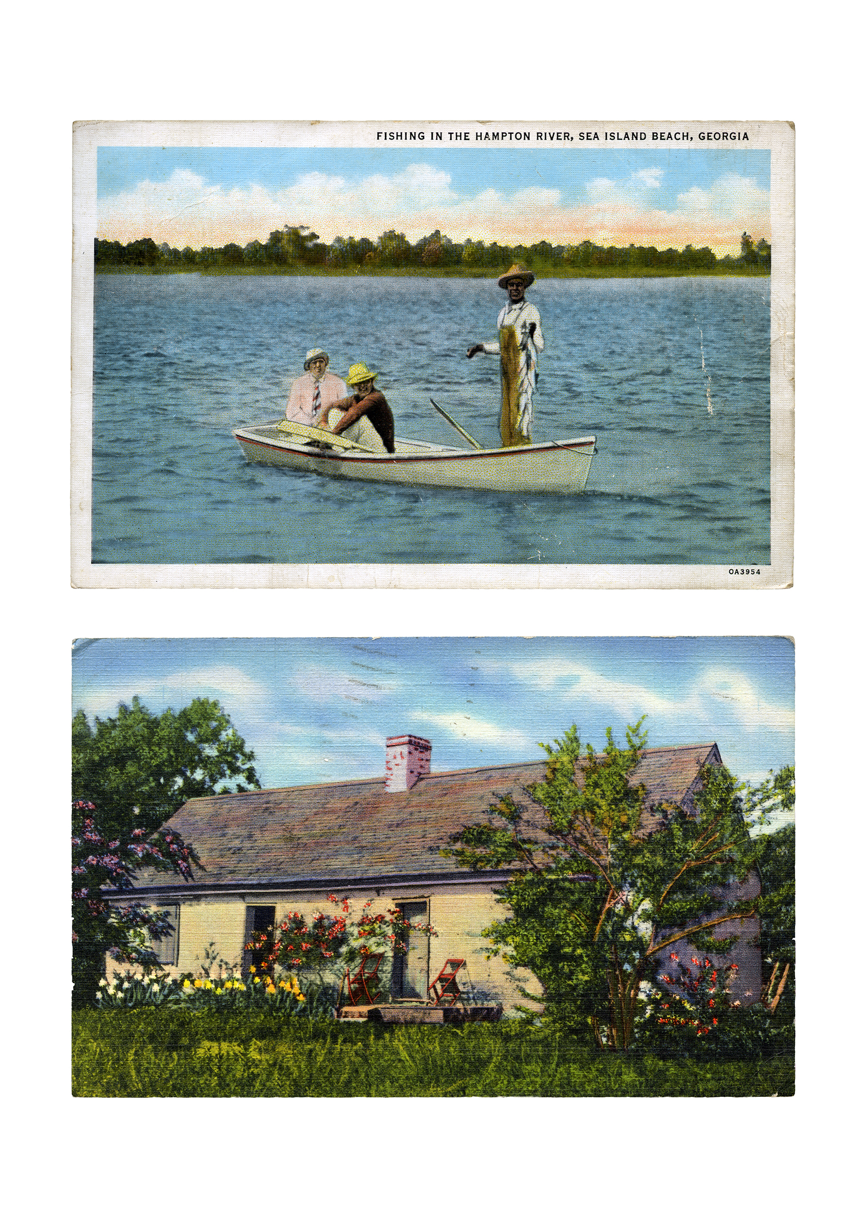 04) Found postcards (Fishing and Old Slave House), 2020