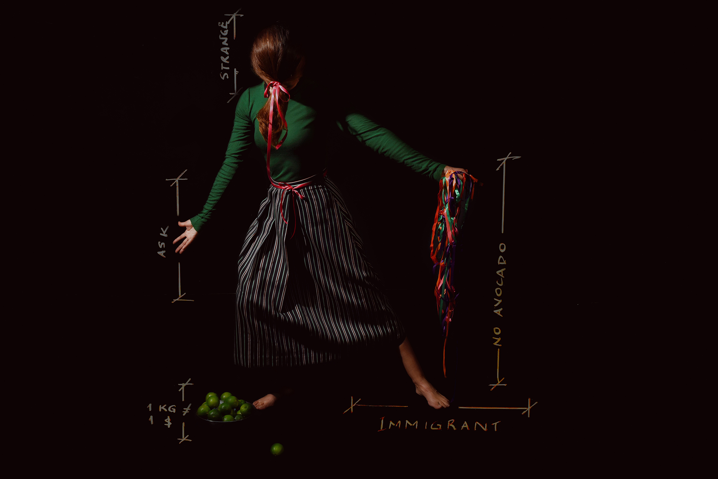 It sounds counter-intuitive, but it involves discipline to show up to make the work completely open. This requires discerning between what to drop from the day I am shooting and what to hold onto for as long as a year since I heard the stories of discrimination. This is what really shapes the shooting as I didn’t have access to the studio whenever I wanted. To be in control while losing control became a real balancing act. I have about three notebooks for this project and so while I was shooting it really helped to read back my notes of the stories people told me.